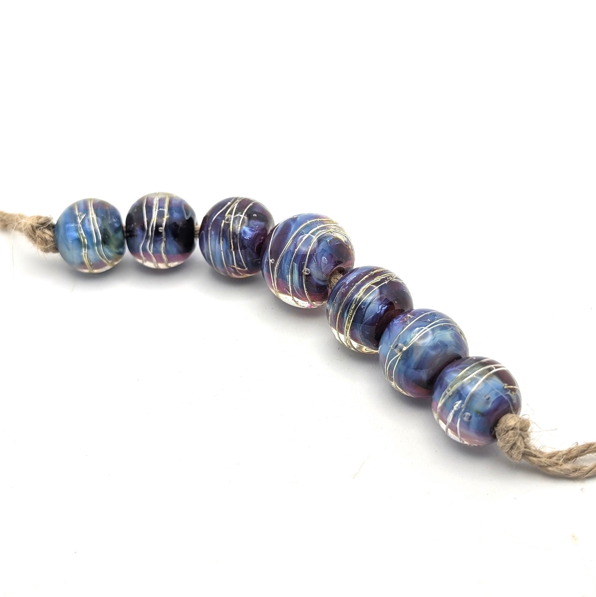 Double Helix glass and fine silver wire hand-shaped to nearly perfect round beads.