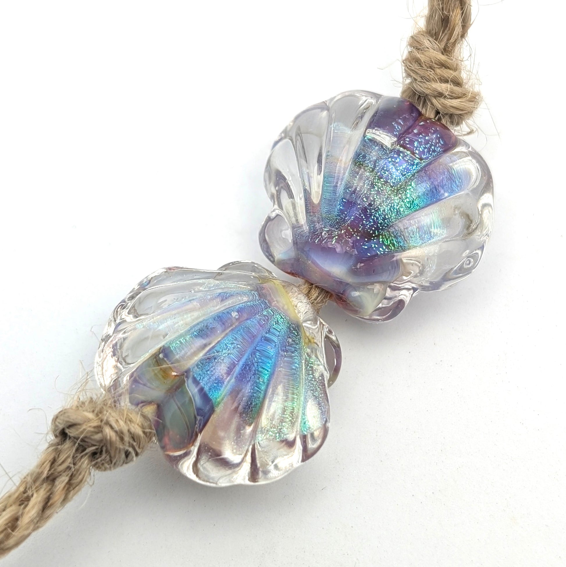 Beautiful handmade glass shell beads.